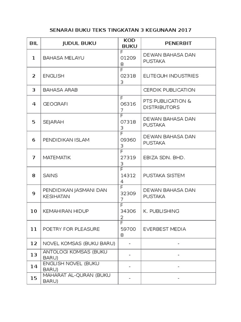 Buku Teks merupakan rujukan utama bagi semua guru dan murid-murid. Cikgu kama May 09 2019. Senarai buku teks tingkatan 3.
